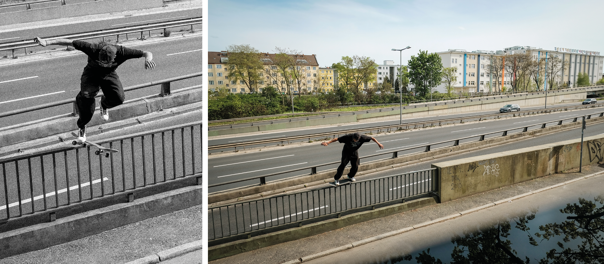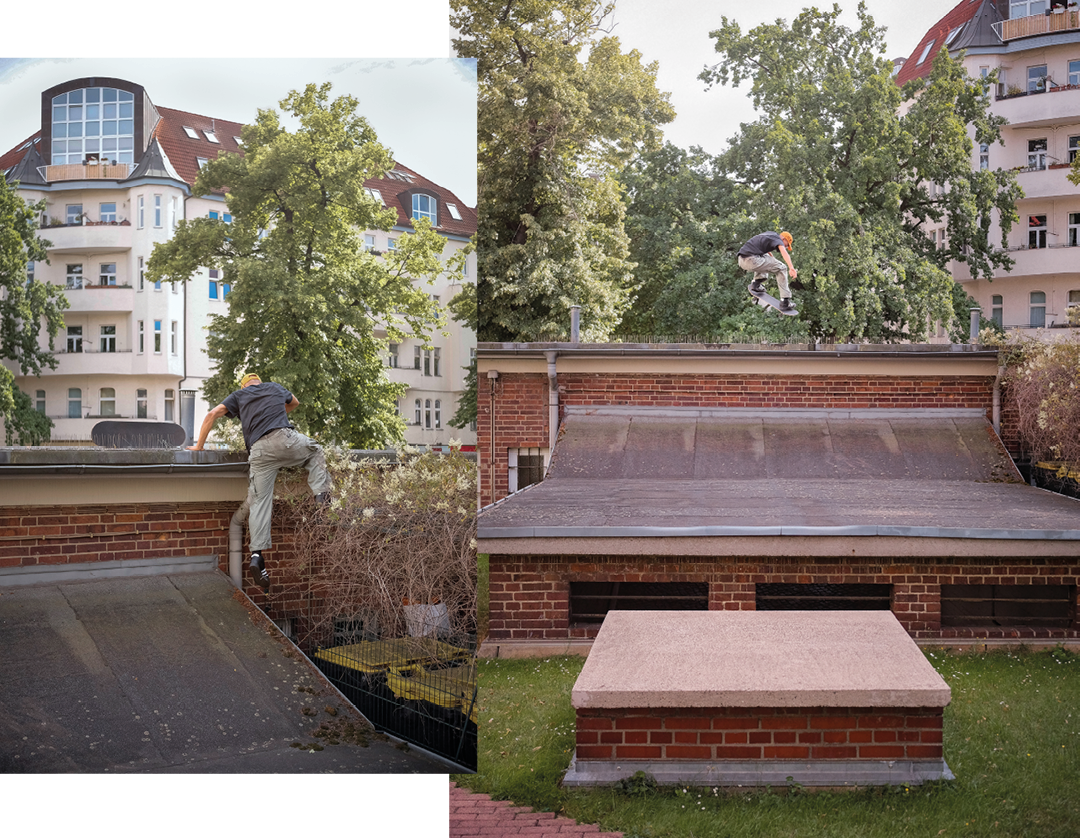 Wallie backside 180°, not on a wall, but on a tree stump. Skating with Leon reminds you to keep your eyes open – not only for potential spots, but also for other important things in life. It will remind you to enjoy life.” (Lea Isabell Uhle)